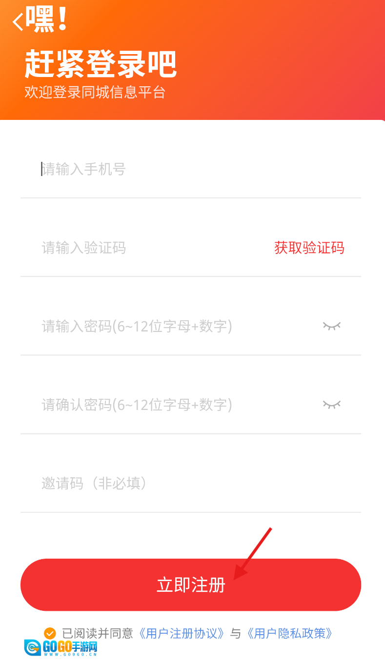 4、在注册页面依次填写手机号、密码等相关信息,确认无误后点击 “立即注册” 完成账号创建。