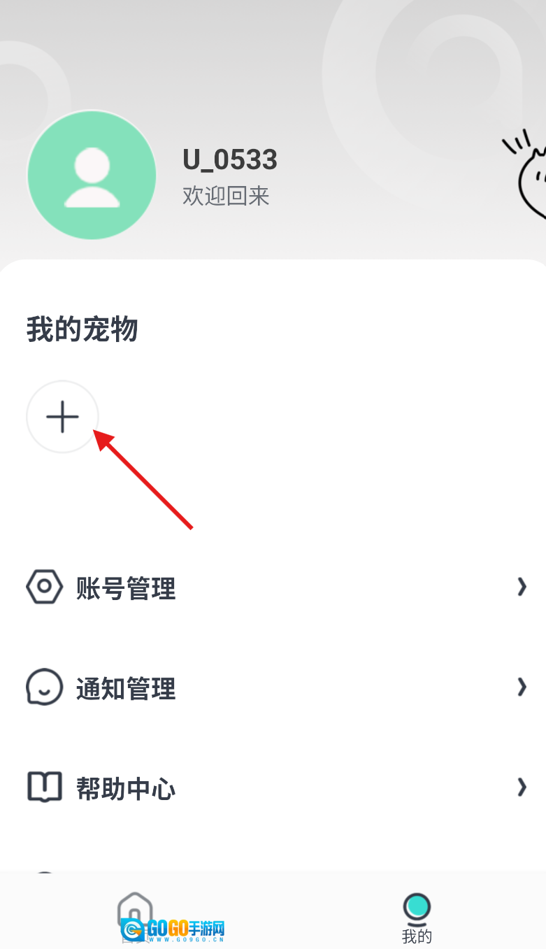 2、于 “我的” 页面中,在 “我的宠物” 板块下方,点击醒目的 “+” 添加按钮。