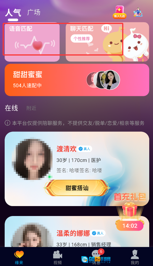 3、高清视频交友服务:提供1080P高清视频通话功能,支持实时美颜滤镜和虚拟背景,提升视频互动体验。