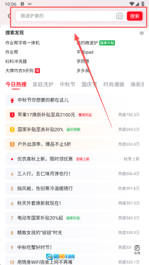 2、找到搜索栏并点击它,以便输入您希望查找的产品名称。