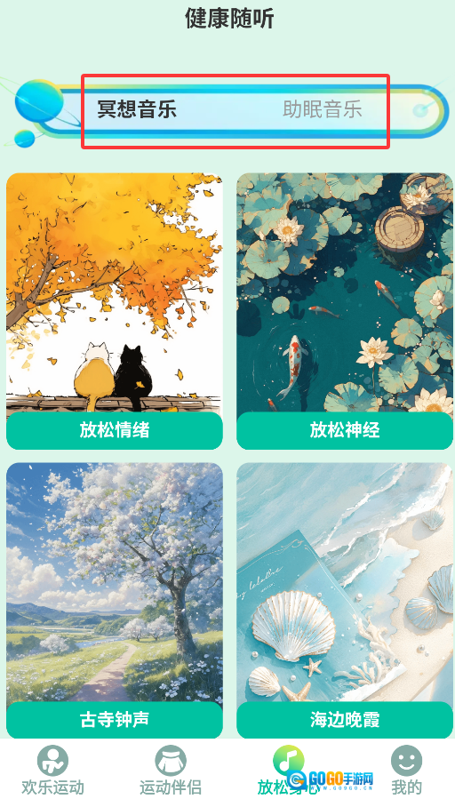 4、“健康音乐”专区涵盖冥想背景音与助眠白噪音,可助力运动后舒缓身心、提升睡眠质量。