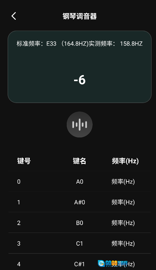 2、调音界面会显示标准音高(如A4=440Hz)和实时检测到的音高,通过指针偏移提示需调紧或调松琴弦。