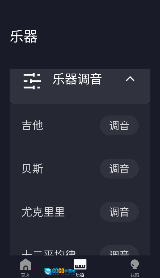 3、应用还支持吉他、贝斯等弦乐器调音,切换乐器类型后会自动匹配对应音高标准,调音结果可保存为历史记录。