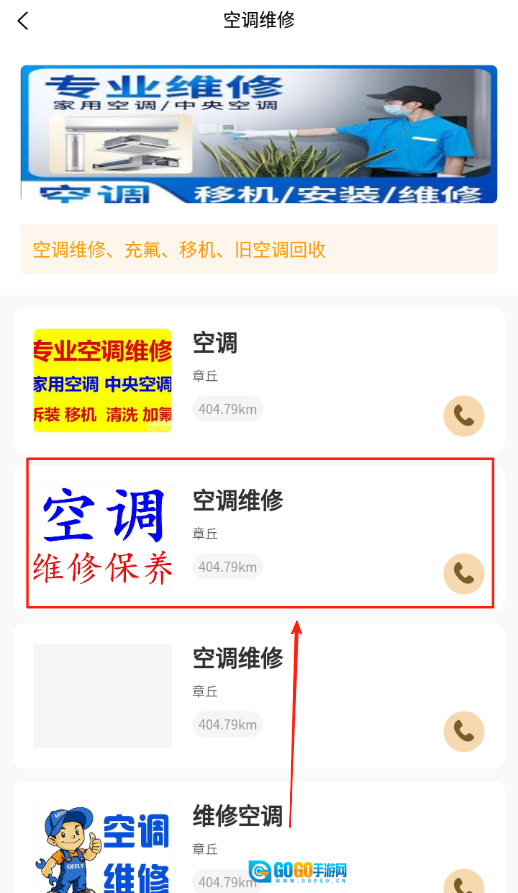 3、浏览各家维修店铺信息,挑选合适的商家点击查看详情。