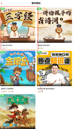 3、内容按0-16岁孩子的认知水平分级设计,幼龄宝宝可以听成语童话,小学生接触名著简版,初高中生能听到深度历史分析。