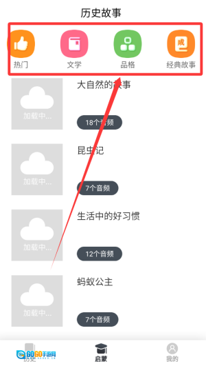 2、在分类页面中,故事按类型划分,如睡前故事、成语故事、童话等,方便快速查找,同时支持收藏功能,便于重复收听。