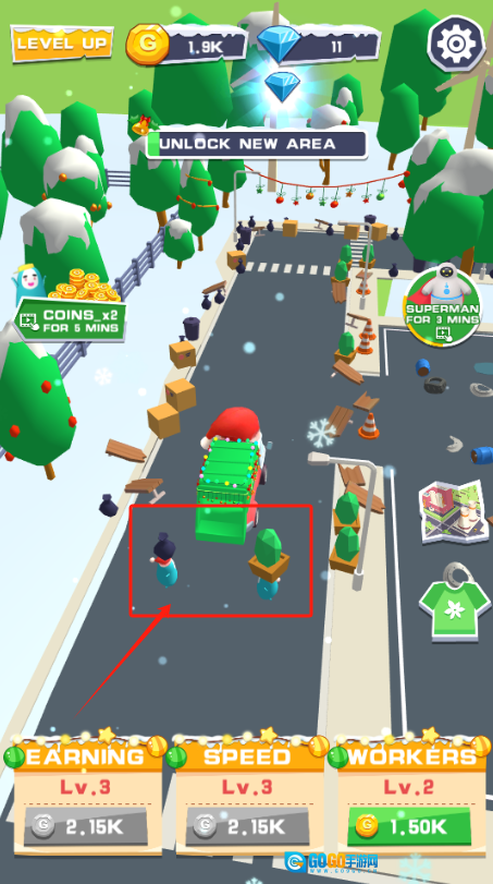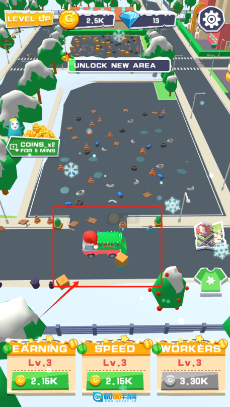 圣诞老人卡车目前处于运行状态,收益与速度均已提升至3级,不过工人等级还需再升一级。