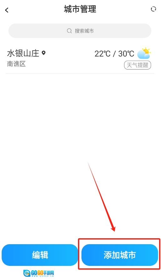 2、在弹出的菜单中选择“添加城市”选项,以便输入你想要关注的地点。
