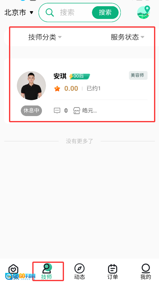 进入“技师”页面后,你能够浏览所有可预约技师的相关信息,像评分情况、提供的服务项目等详细内容都能看到。
