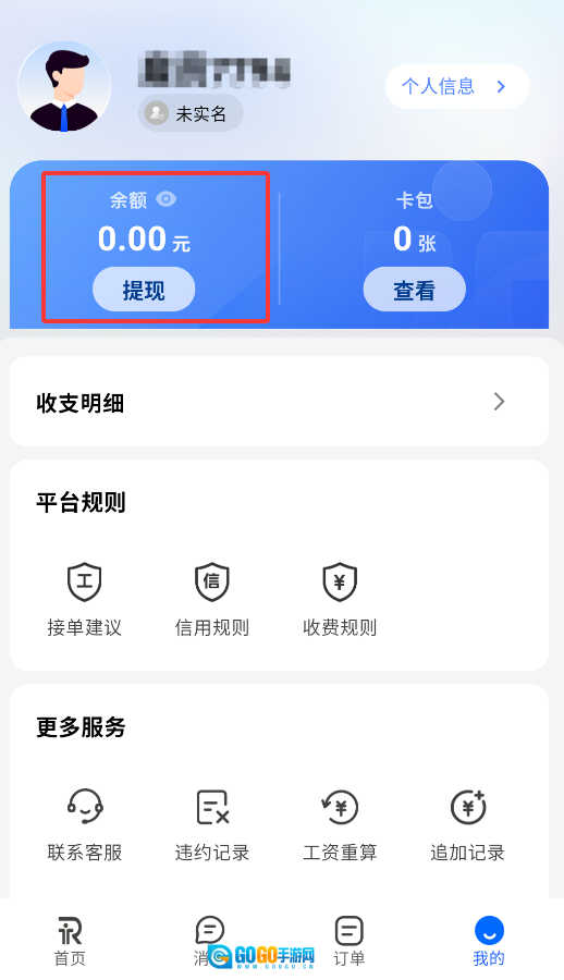 3、“个人中心”具备账户余额管理、提现操作执行以及平台规则查询等多方面的综合服务功能。