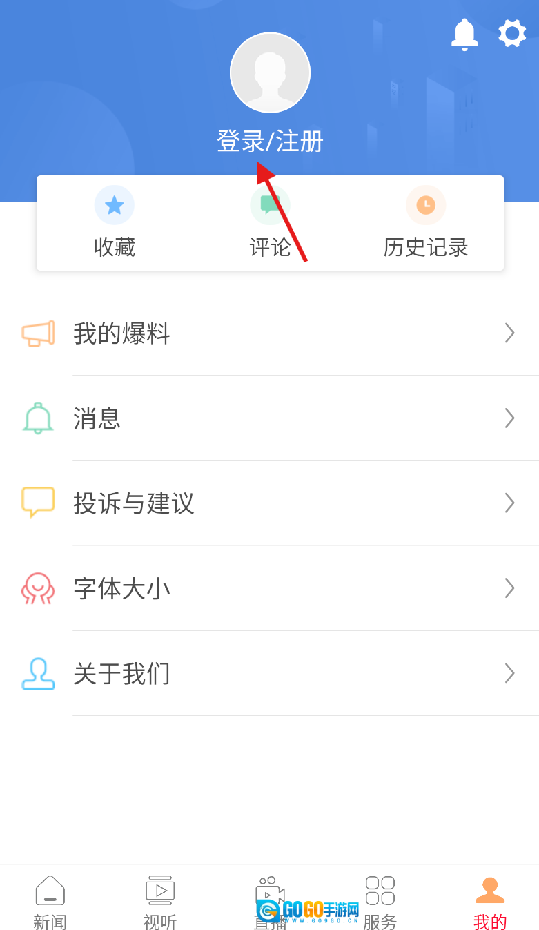 2、切换到“我的”页面,在页面上的各类选项里,找到“登录/注册”按钮并点击,即可进入登录界面。