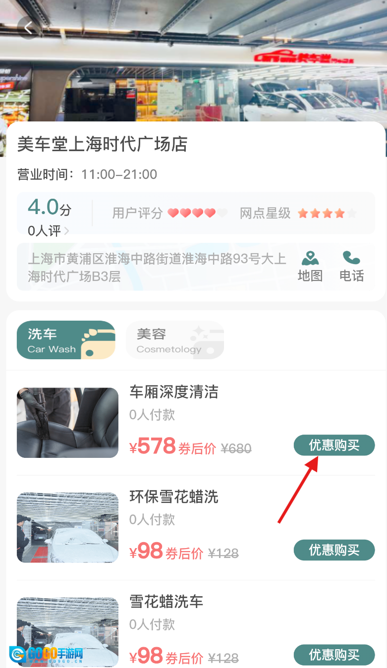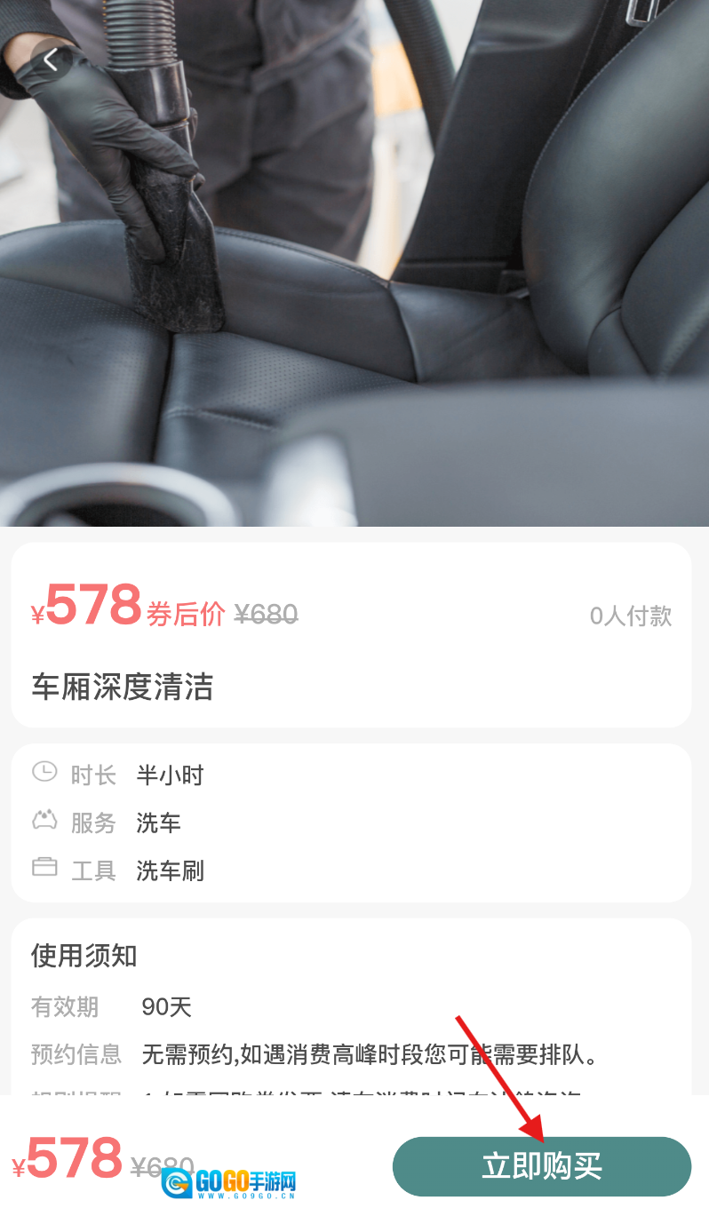 3、进入店铺服务页面后,找到“车厢深度清洁”项目,点击带有优惠标识的选项。
