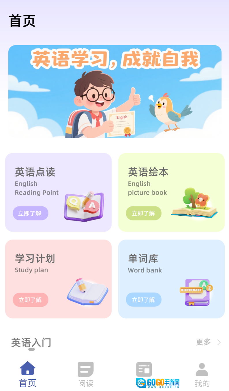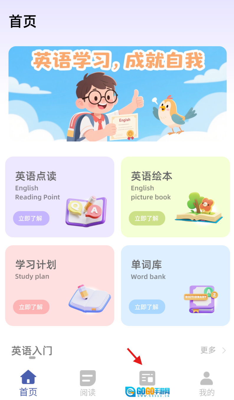 3、开始学习:在单词库、绘本等学习板块中,挑选自己感兴趣的内容,利用点读、翻译等功能来启动学习。