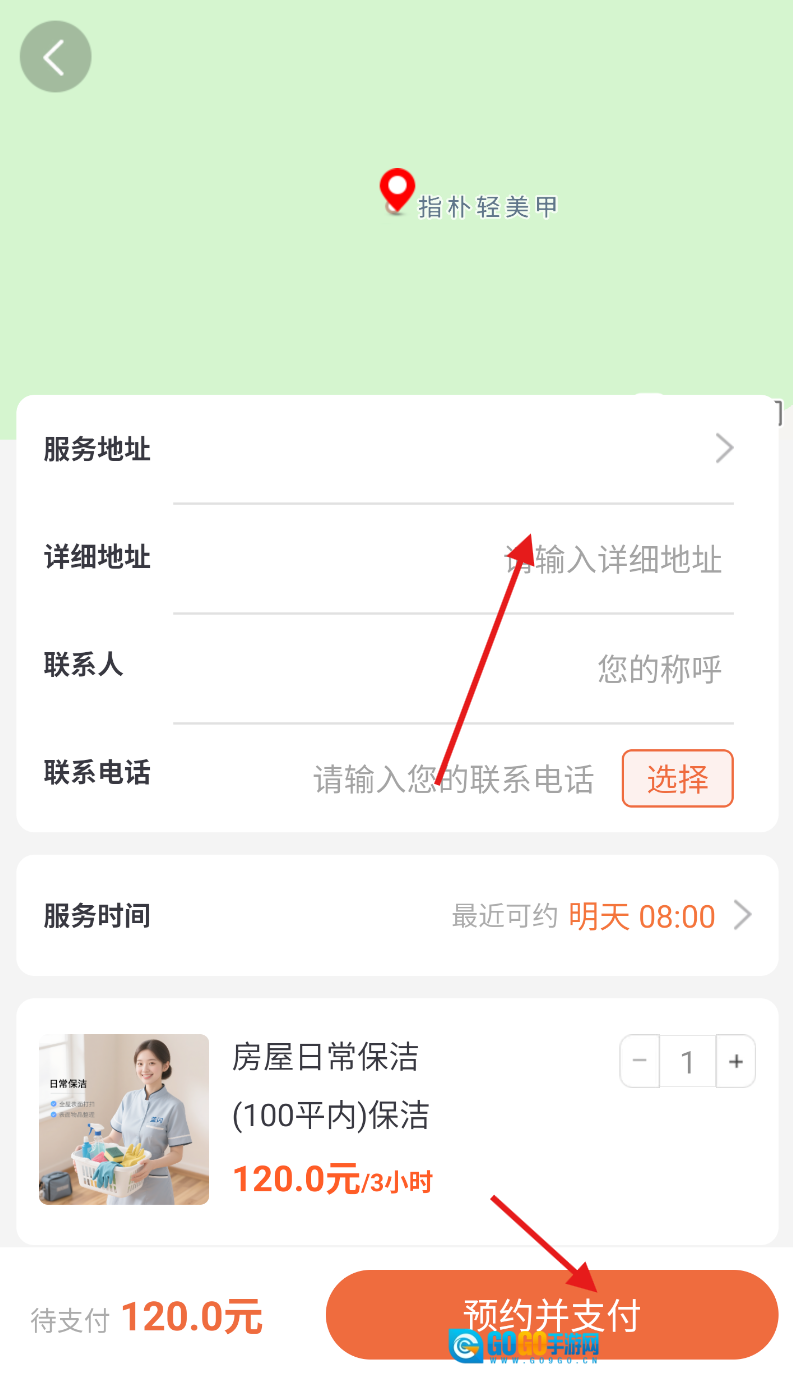 4、进入预约界面后,请准确填写服务地址等相关信息,仔细核对确保无误,再点击预约按钮并完成支付流程。
