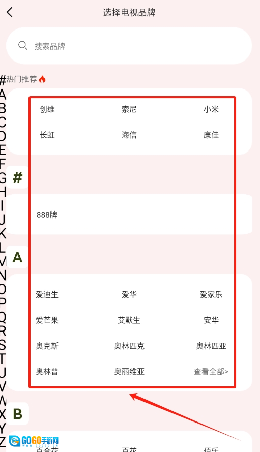 2、从列表中选出你家电视机的品牌,像海尔、创维这类都可以。