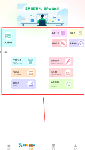 2、组件商城汇集了设计师的原创作品,涵盖时钟、日历、电量监控等实用工具类组件,既具备出色的美观性,又拥有强大的功能性。