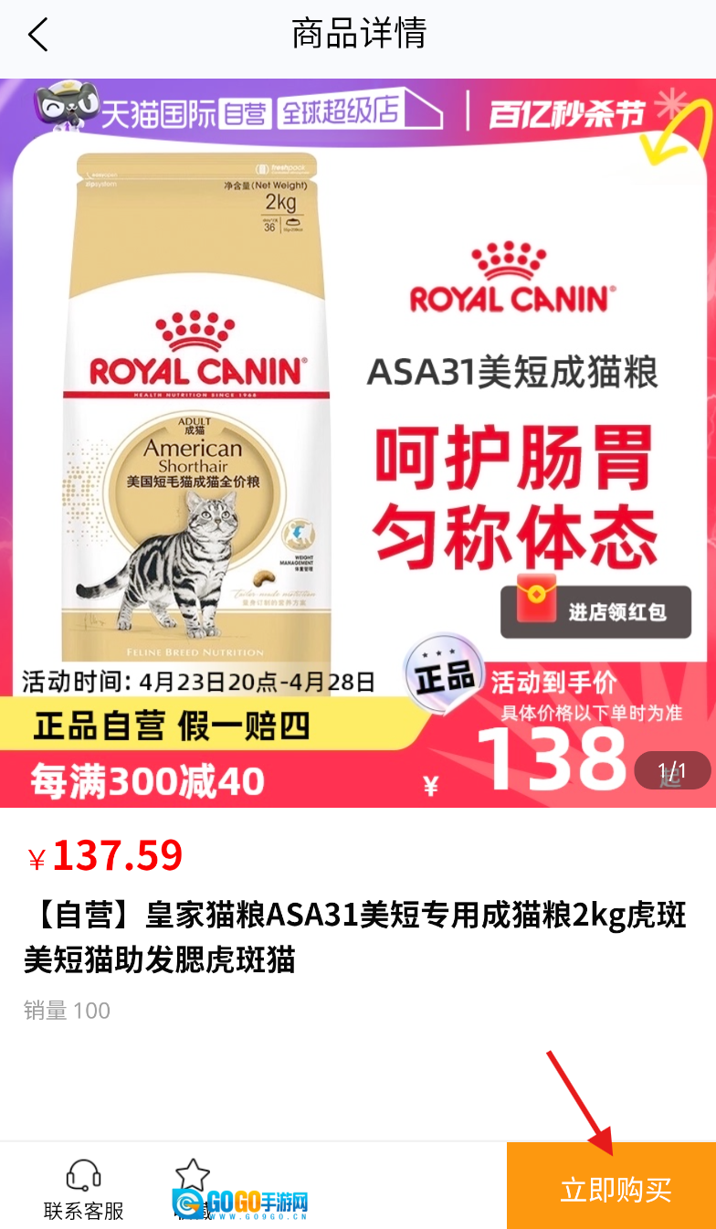 3、在确认好需求之后,直接点击商品详情页右下角的“立即购买”按钮,这样就能完成选购操作了。