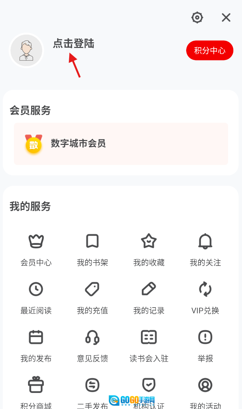 2、进入头像相关页面后,找到醒目的“点击登录”字样标识,点击进入登录界面。