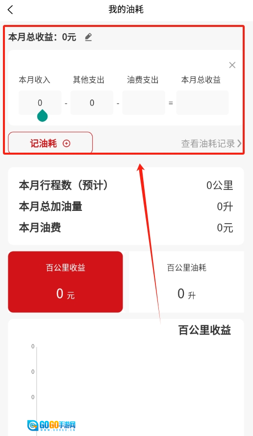 3、登录后,在“我的”页面点击“我的油耗”,即可记录本月除去其他支出与油费支出后的总收益。