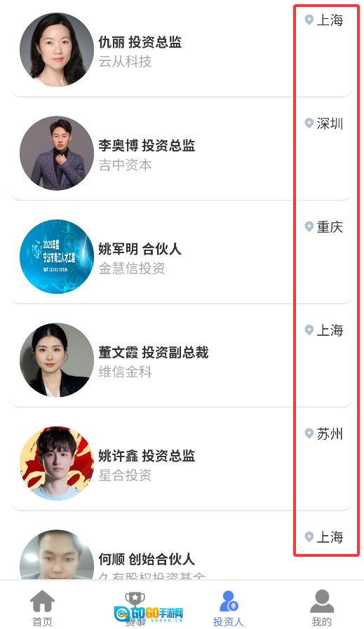 进入投资人专区后,能够依据地域进行筛选,从而查看全国范围内各地区的投资机构以及投资人的相关资料。