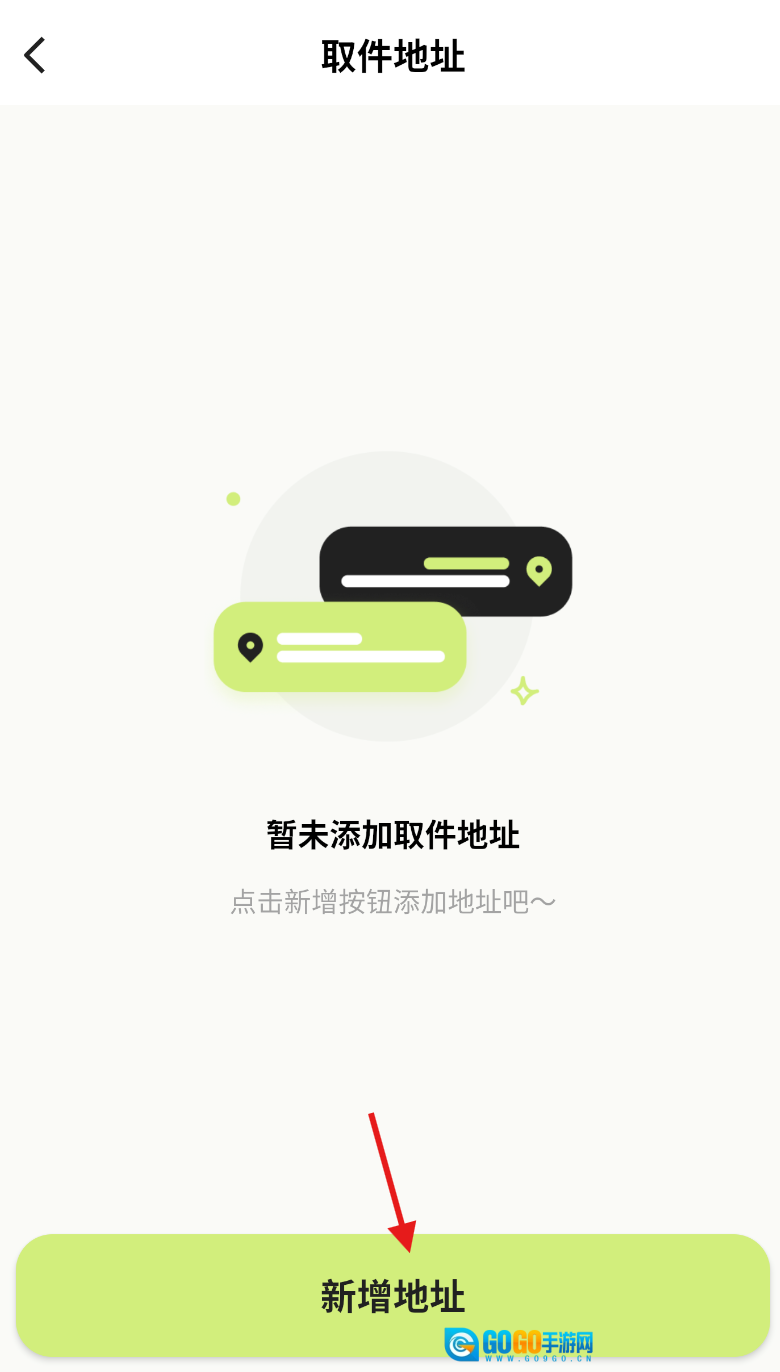 3、进入取件地址页面后,在界面中找到“新增地址”按钮并点击。