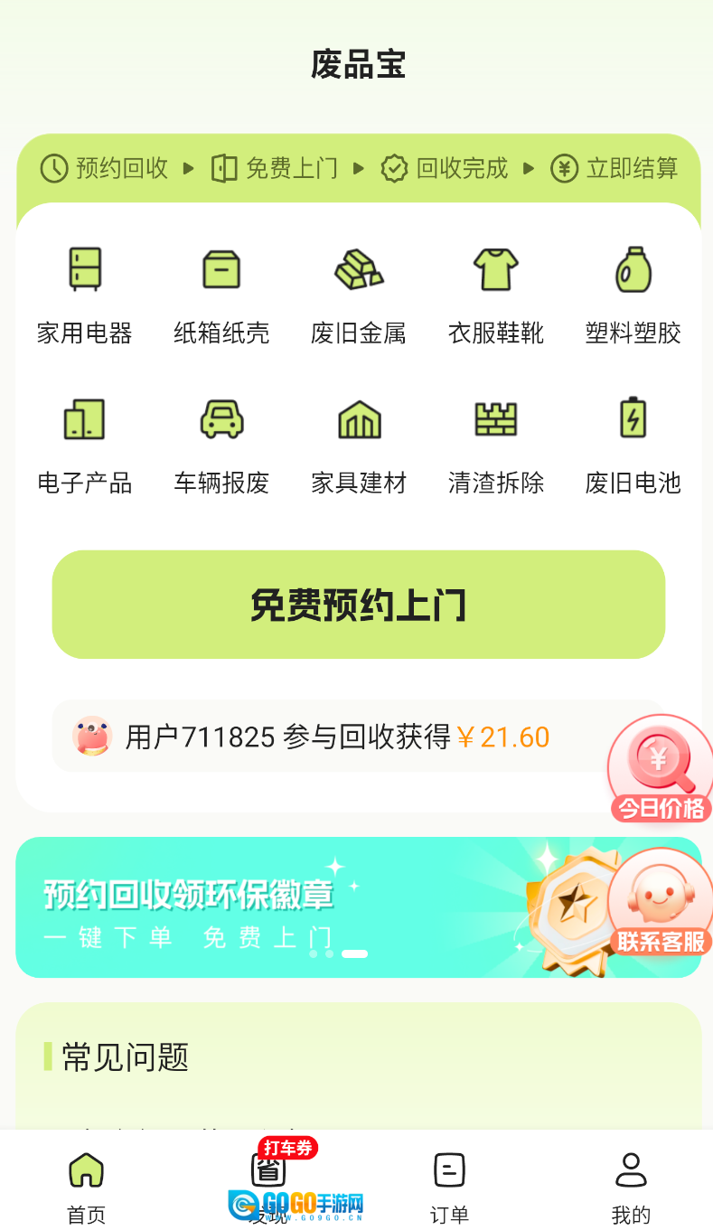 4、上门回收服务:突破传统回收模式的限制,用户完成下单后,专业回收人员会迅速响应需求,直接前往用户家中收取废品,为用户节省时间、减少麻烦。