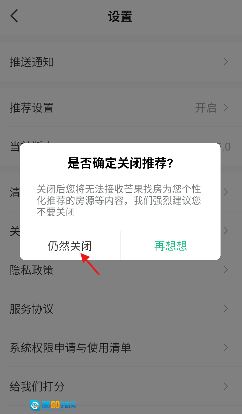 芒果找房如何关闭推荐设置