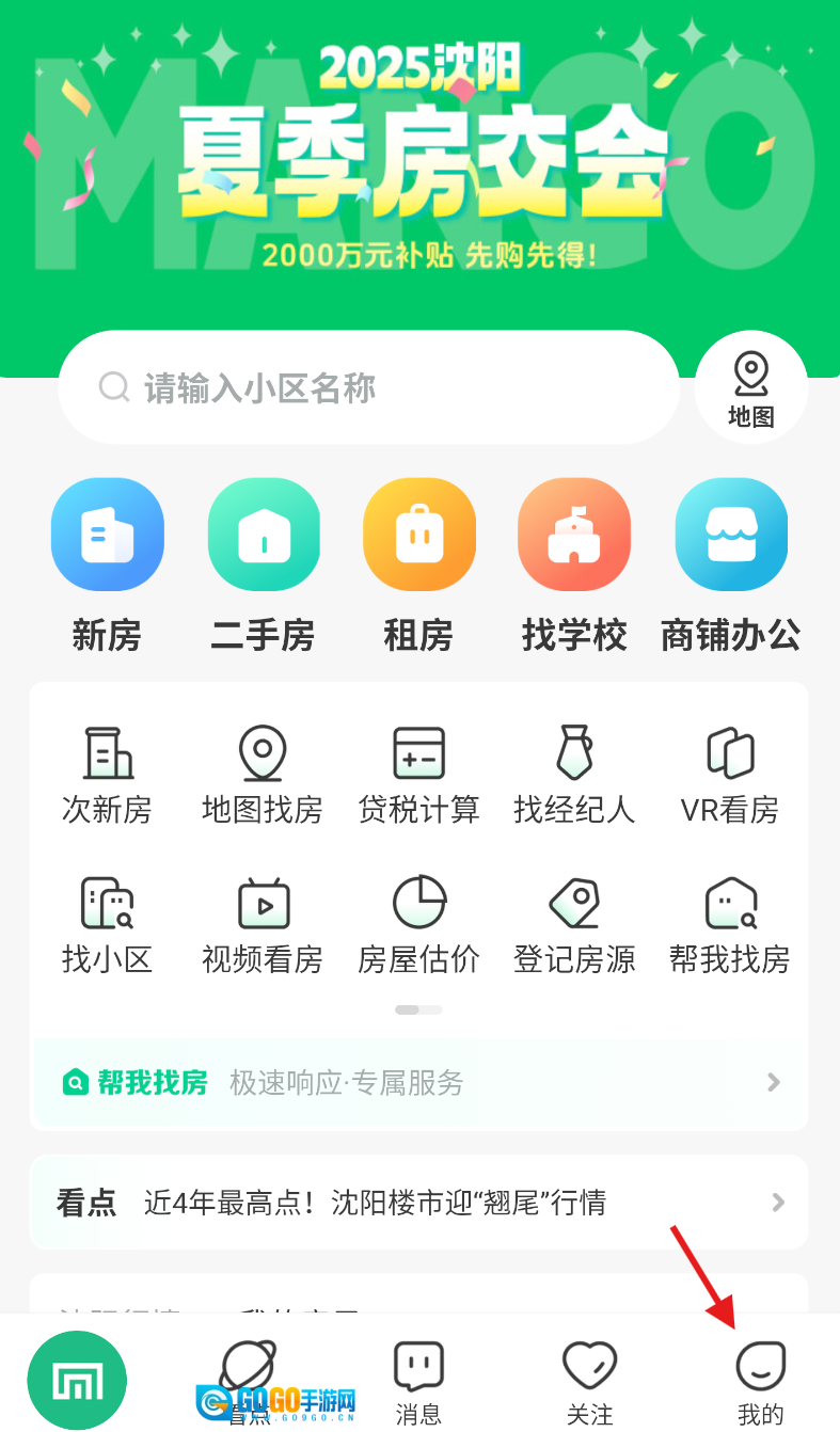 1、打开芒果找房应用,进入主界面后,点击底部导航栏里的 “我的” 选项。