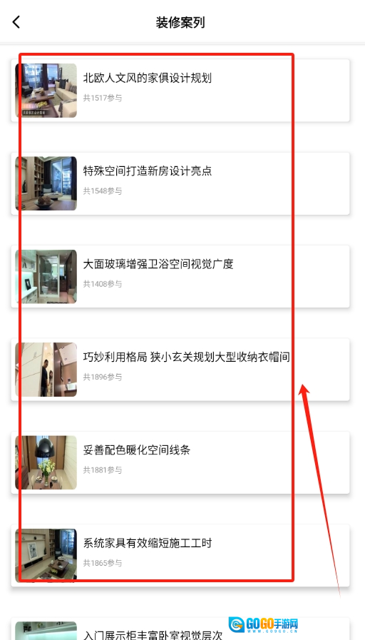 进入学习板块后,各种各样的装修案例映入眼帘,从中挑选一个自己特别想学习的案例。