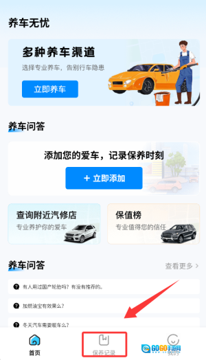 进入汽车养车无忧应用后,在首页找到并点击“保养记录”选项,即可进入保养记录功能页面。