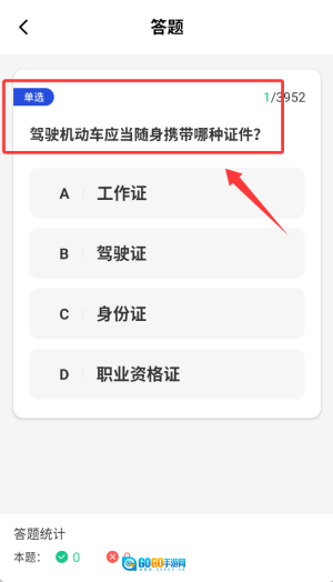3、系统会随机生成题目,用户可依据交通法规知识选择正确答案来完成练习。