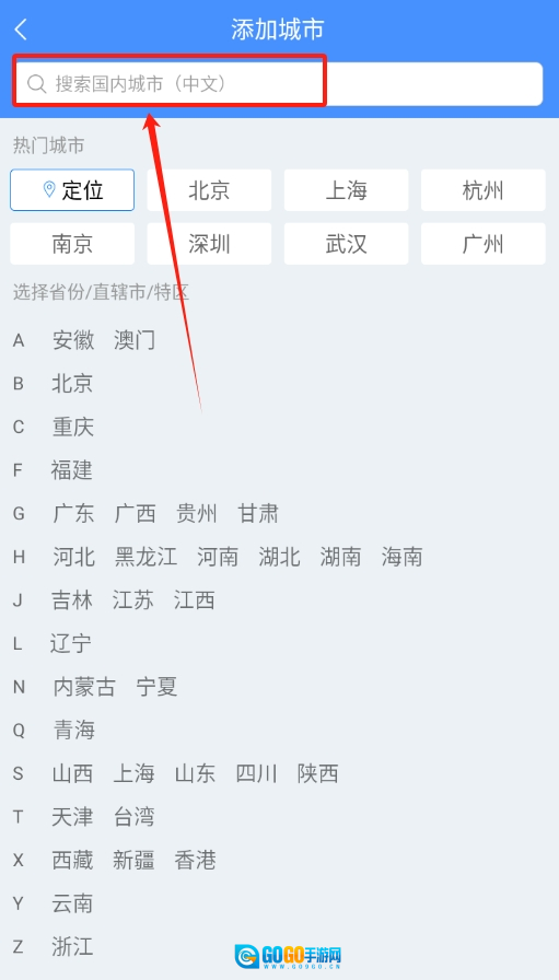 2、在搜索框中输入城市名称,输入完成后点击确定,该城市的天气信息就会添加到你的列表中。