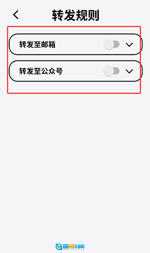 2、在转发设置里选择接收方式,可选项为指定邮箱或微信公众号推送。
