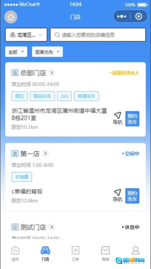 进入卜豆洗车后,在首页底部的菜单栏里找到“门店”功能并点击,即可查看合作的洗车网点。