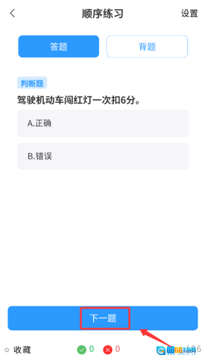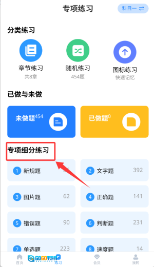 2、依据学习进度挑选对应的练习板块,点击“开始练习”按钮进入答题界面。
