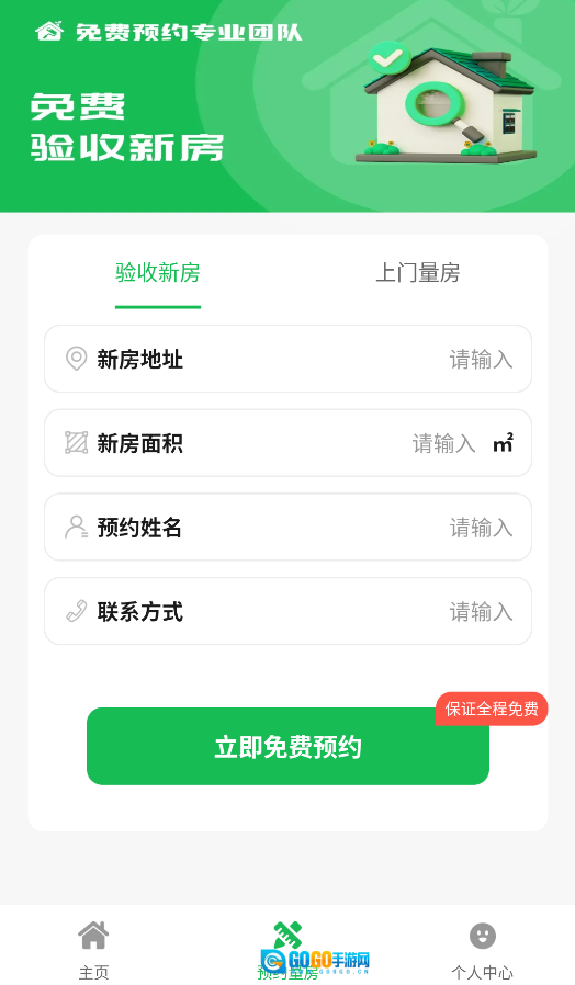 3、可通过预约功能选择量房或验房服务,填写具体时间需求后,等待专业团队上门服务确认。