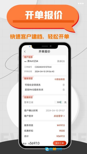 1、这款应用与汽服行业需求高度匹配,把传统业务流程转化为数字化形式,能明显减少人力成本和差错率。