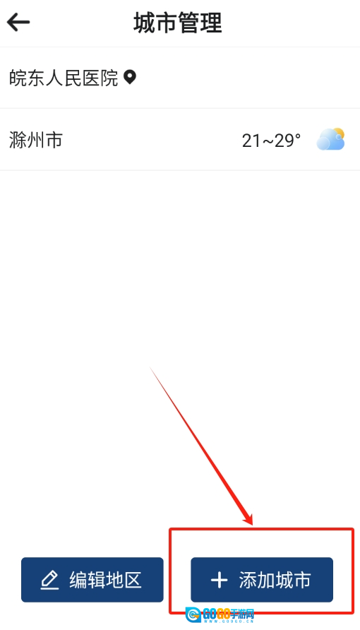 1、打开软件后直接查看首页,在页面左上角能找到“添加城市”的选项,点击该选项即可启动后续操作。
