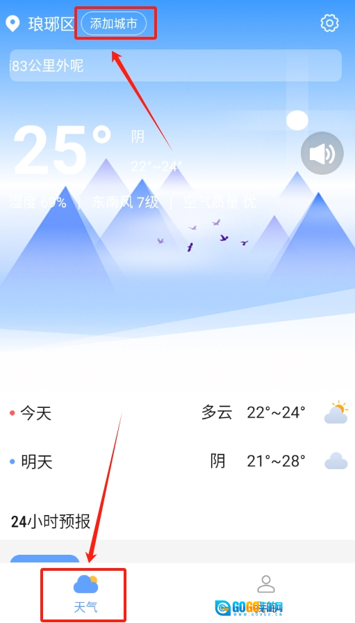 七彩好天气怎么添加城市天气预报