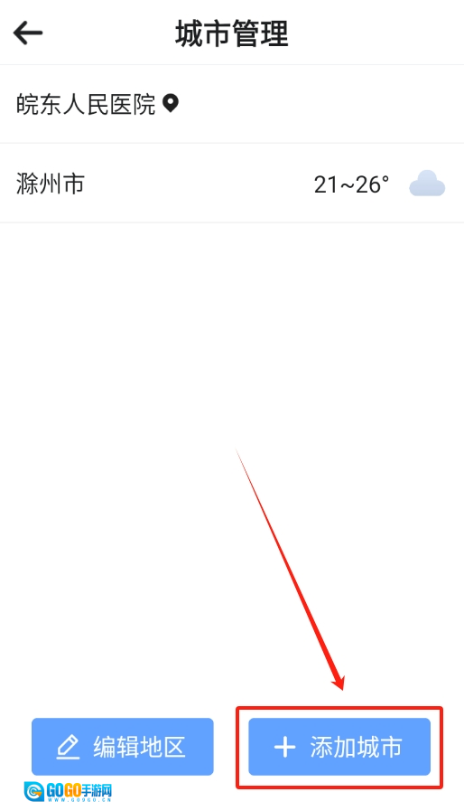 打开软件后直接查看首页,在页面左上角能找到一个小小的添加城市按钮,点击该按钮即可开始相关操作。