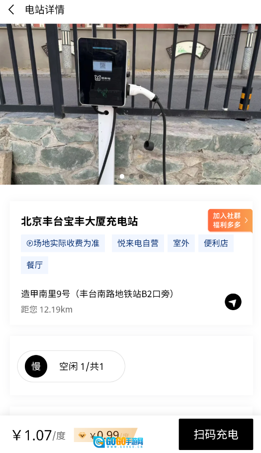 2、挑选充电站进入详情页面,扫描充电桩上的二维码就能开启充电流程。