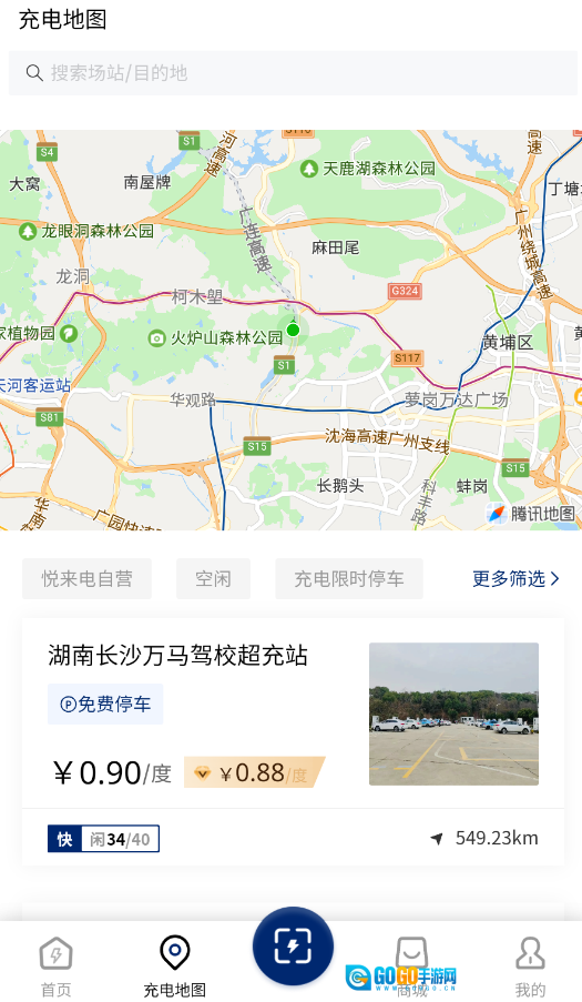 1、打开悦来电应用后,可在首页搜索框输入目标地点,也能直接浏览系统推荐的附近充电站列表。