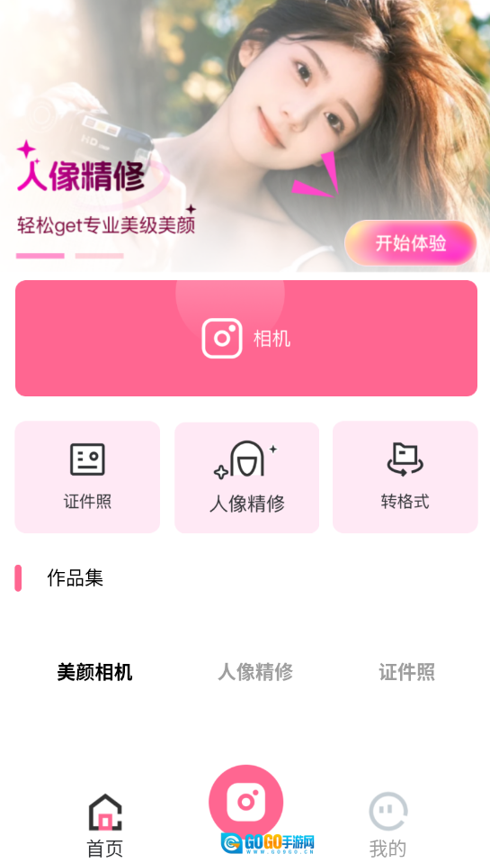 1、启动AI美效相机后,点击首页"人像精修"功能按钮进入编辑界面。
