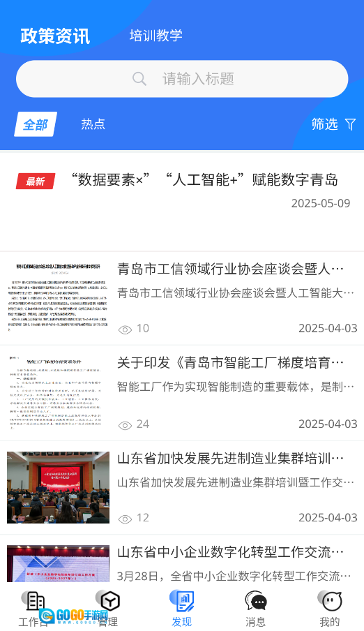 2、通过"发现"板块可查阅最新政策解读文件及企业转型培训课程资源。