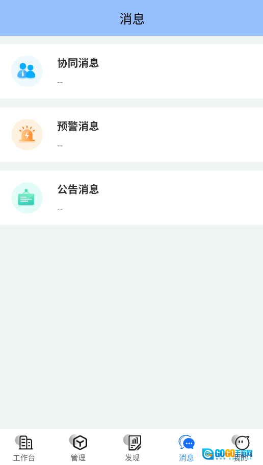 3、"消息中心"分类管理协同办公通知、风险预警提示及企业公告等重要信息。