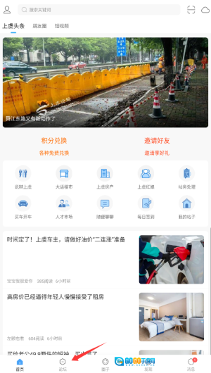 1、登录上虞论坛后,在首页找到并点击“论坛”版块,随后进入本地资讯讨论区。