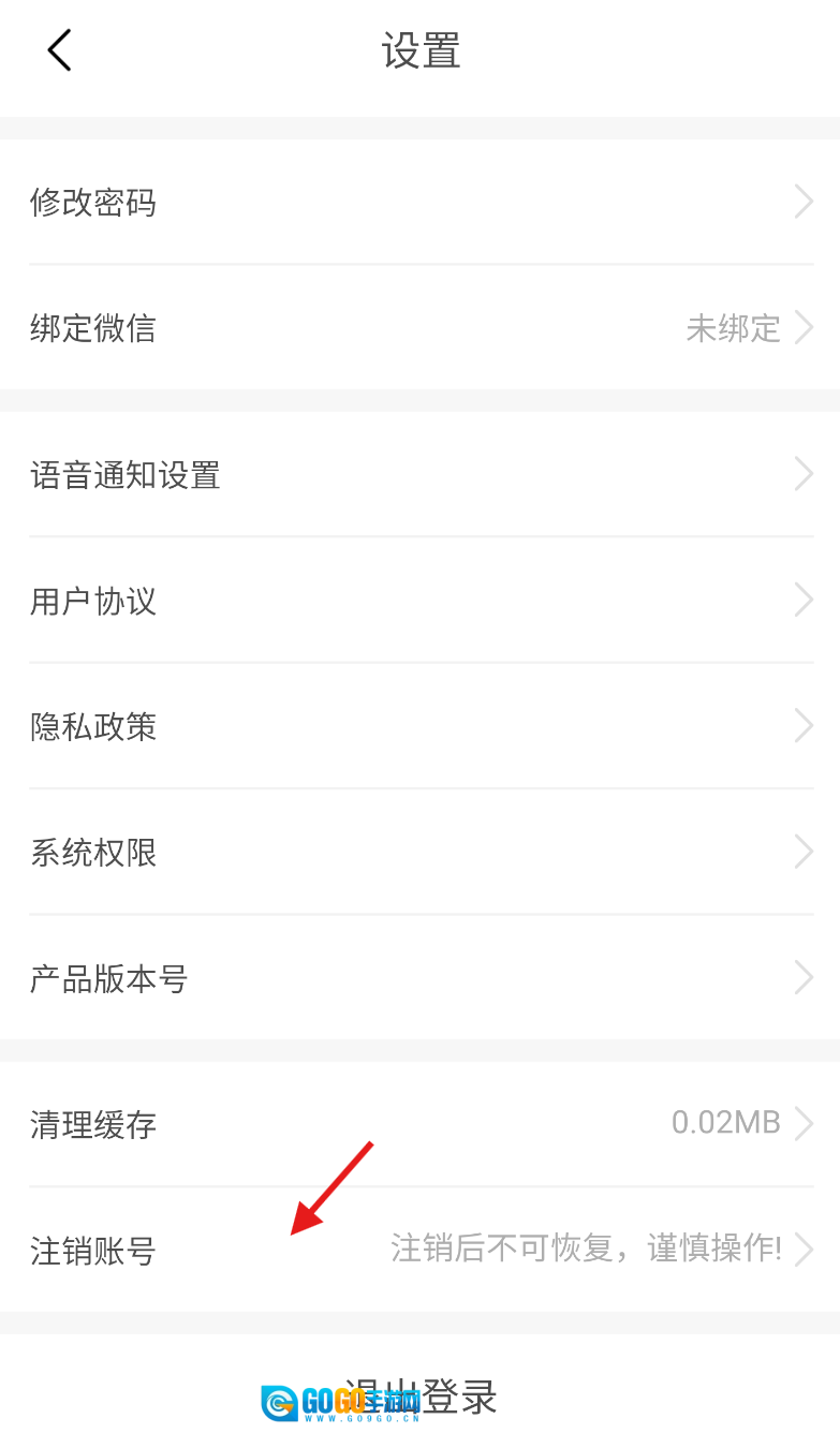 3、进入设置页面后,向下滑动页面找到 “注销账号” 功能按钮,点击此按钮以继续后续操作。
