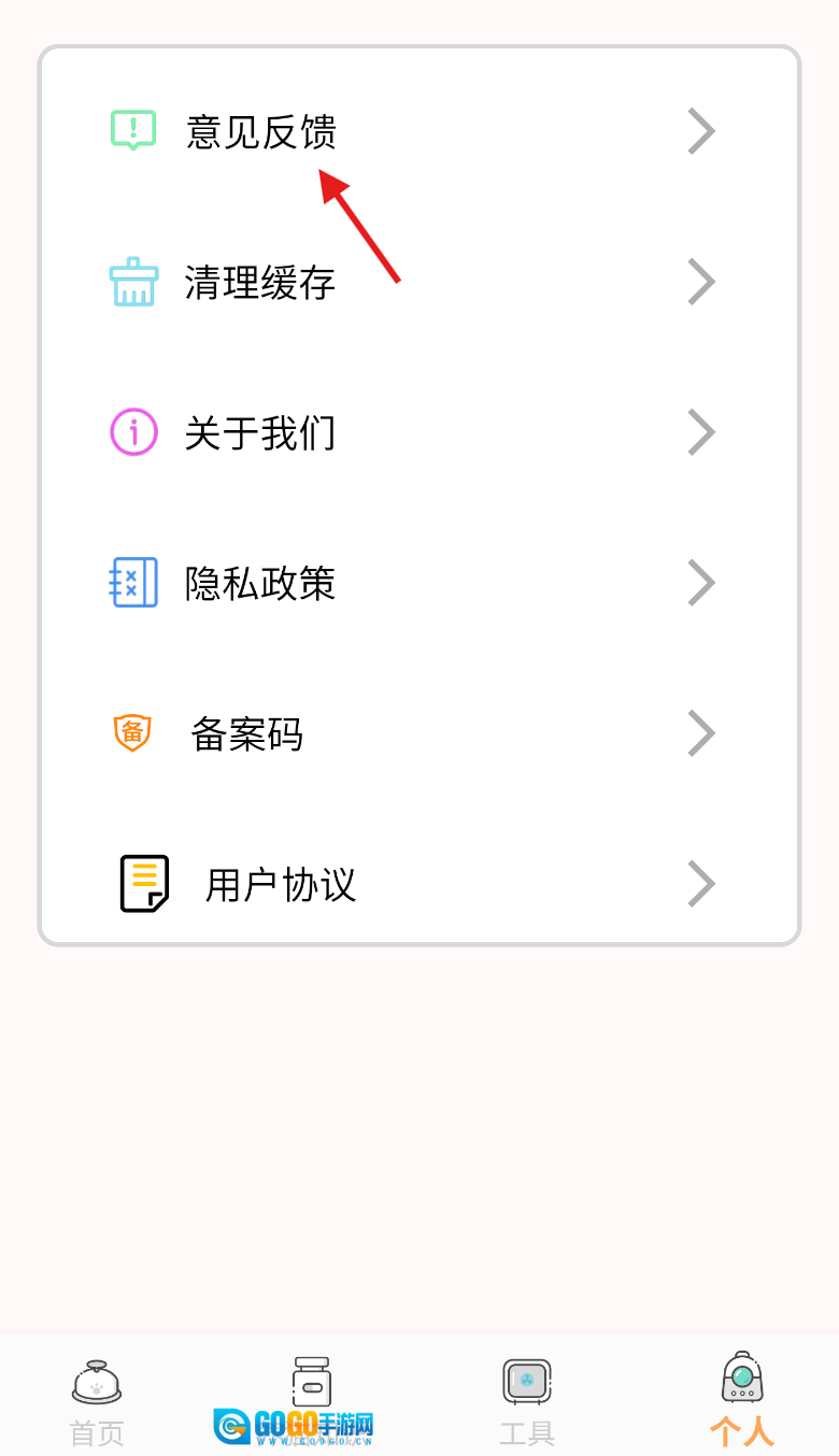 2、进入个人页面后,下滑页面或仔细查找,找到“意见反馈”按钮并点击,进入反馈入口。