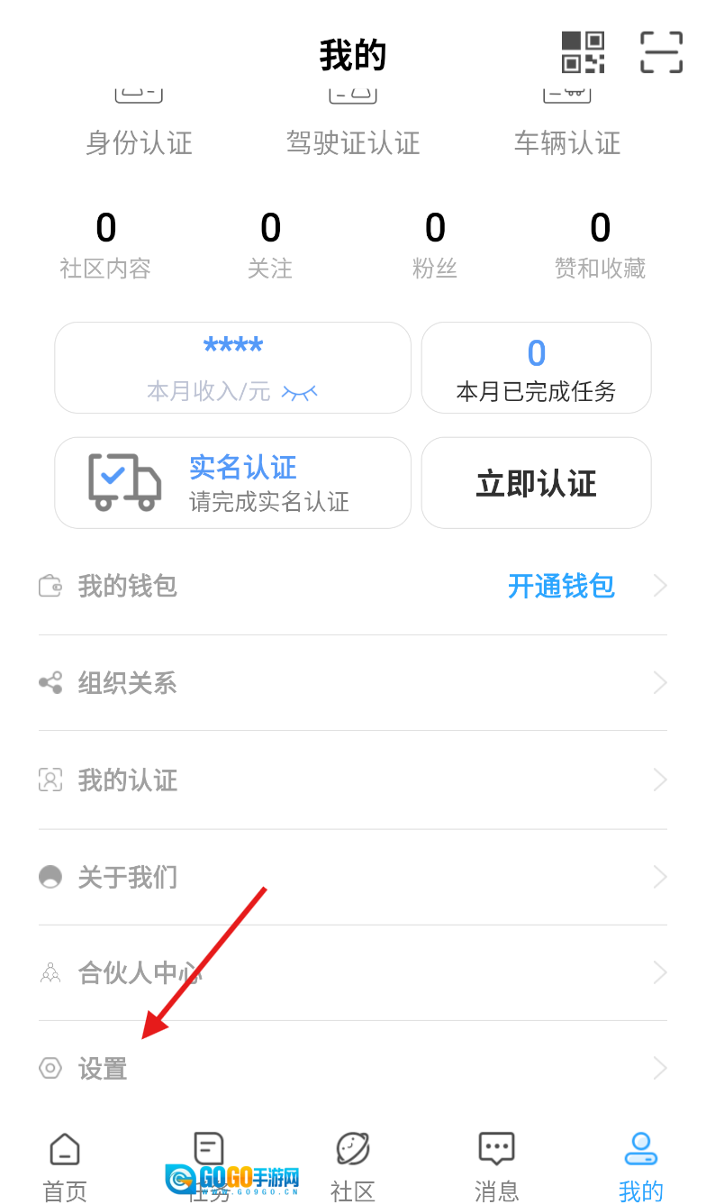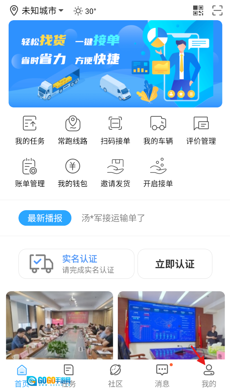 1、打开物流公社司机应用,在主界面找到并点击“我的”选项,进入个人相关页面。