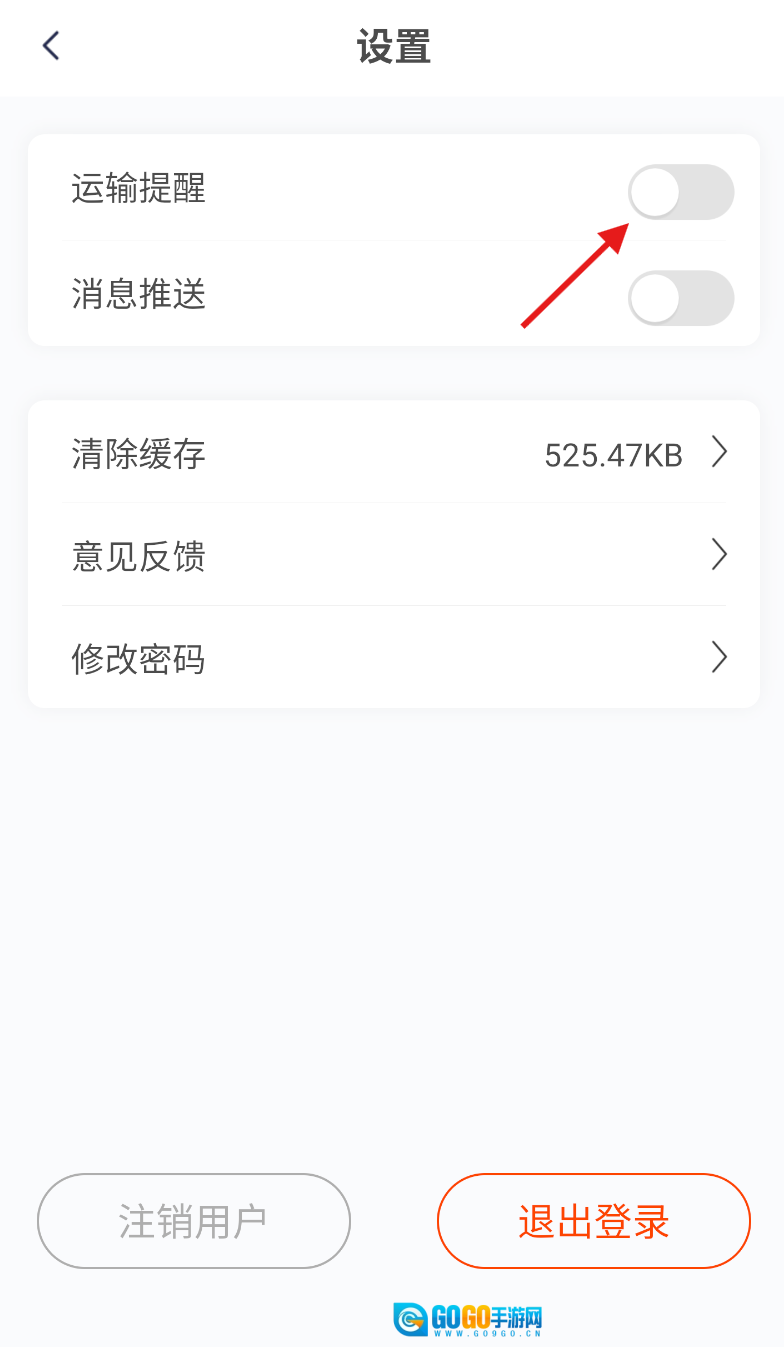 3、进入设置界面后,找到位于首行的“运输提醒”选项,点击该选项旁边的开关按钮,就能开启运输提醒功能。